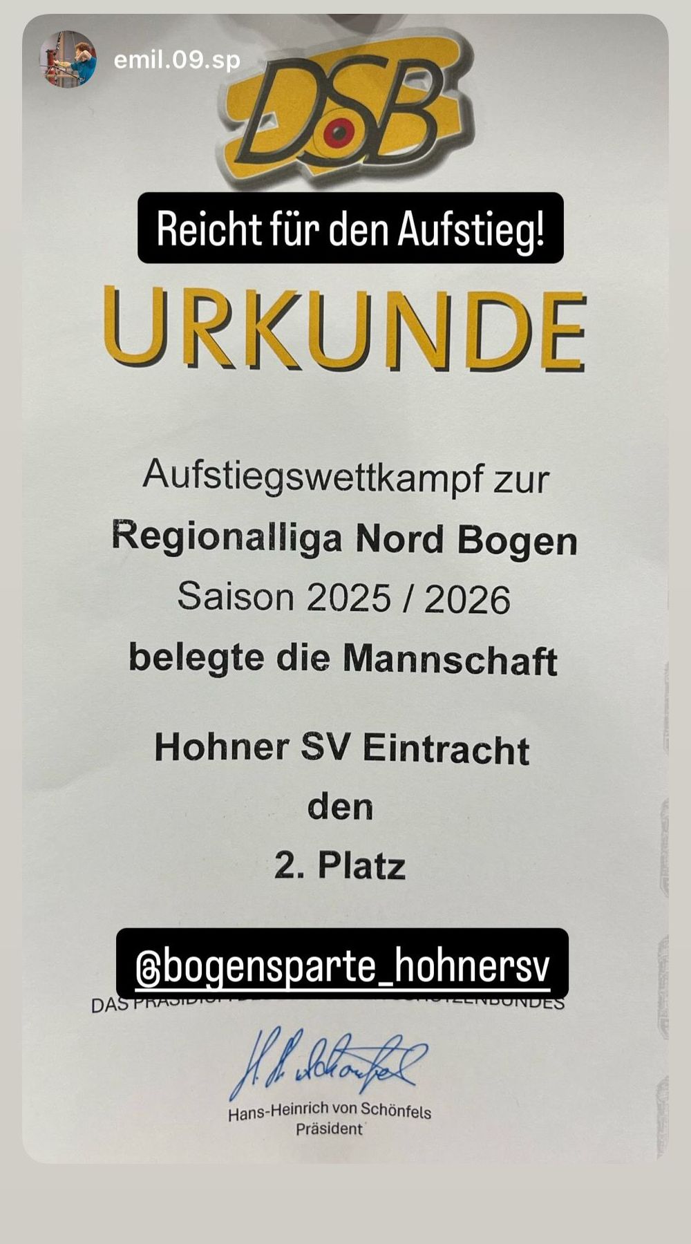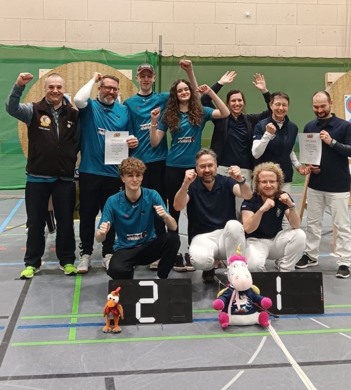 Wir haben uns mit der zweitplatzierten Mannschaft vom ATSV Stockelsdorf für den Relegationswettkampf am 15. Februar in Wedemark (Niedersachsen) qualifiziert. Insgesamt acht Mannschaften der obersten Bogenligen der Verbände aus Schleswig-Holstein, Hamburg, Bremen und Niedersachsen kämpften um die beiden Aufstiegsplätze in die Regionalliga Nord des Deutschen Schützenbundes. Nach den ersten vier Matches haben wir nur gegen Vfl Grasdorf verloren und lagen auf einem sicheren Aufstiegsplatz. Nach der Pause wurden die letzten drei Matches geschossen. Obwohl wir das letzte Match gegen unsere Freunde aus Stockelsdorf verloren hatten, konnten wir den zweiten Platz verteidigen. Erschöpft, aber sehr glücklich haben wir die Relegation auf einem sicheren Aufstiegsplatz beendet. Nun werden wir ab November an vier Wettkampftagen um den Verbleib in der Regionalliga Nord 2025/2026 kämpfen. Wer weiß, vielleicht sind wir wieder für eine Überraschung gut?