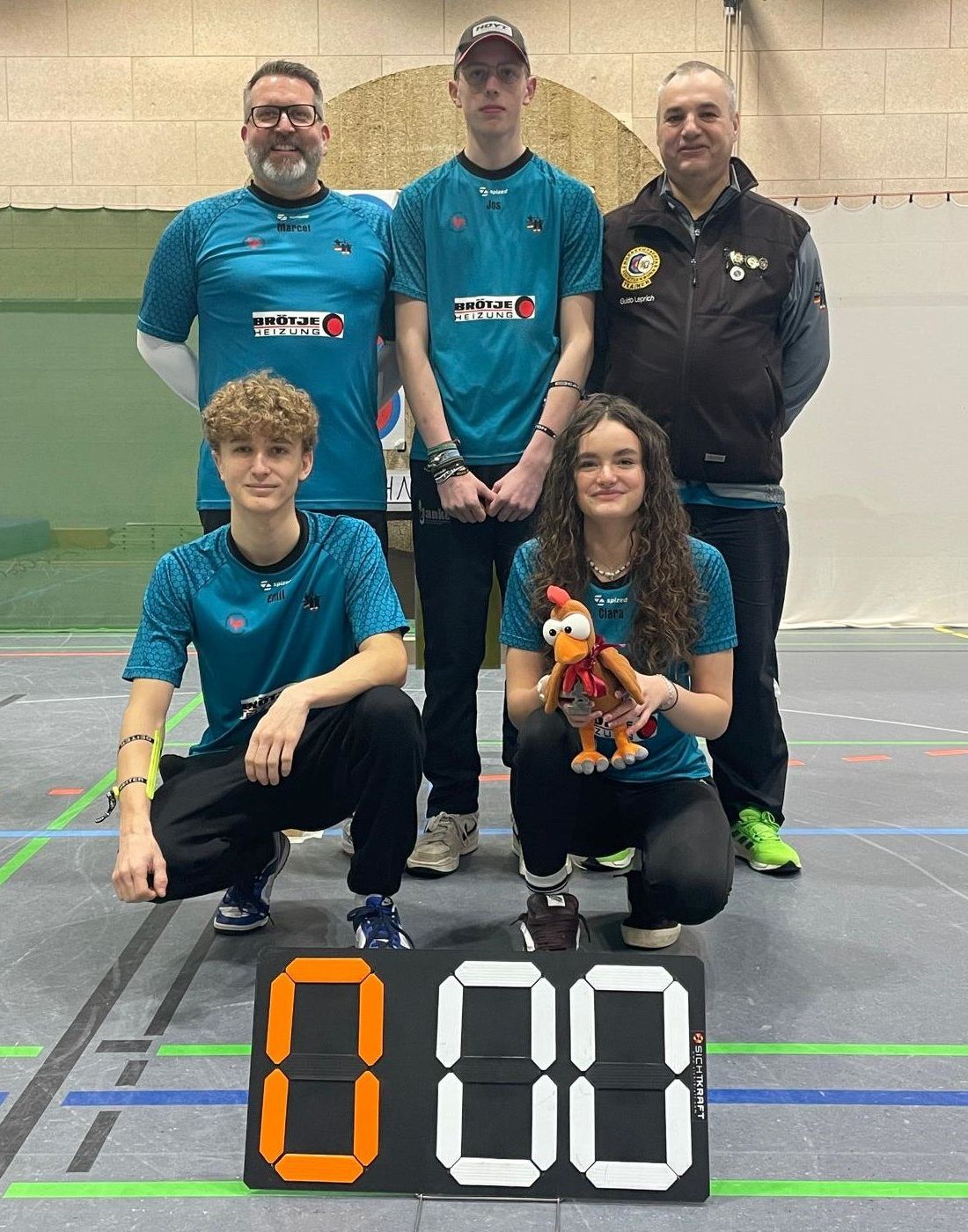v.l. Jos Gröger, Marcel Jürgens, Ciara Göttsche, Marvin Hutz, Emil Sperber, Guido Leprich(Coach)