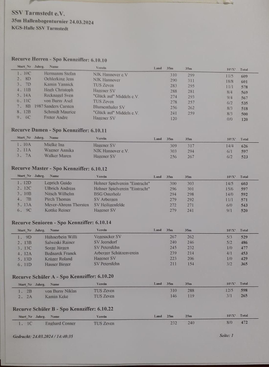 Am 24.3.2024 wurde in Tarmstedt in der Halle auf 35m (60er Auflage) geschossen! Andy und Guido haben sich schon am Vortag mit dem Wohnmobil auf den Weg gemacht und haben tolle Egebnisse und Plazierungen mit nach Hause gebracht!