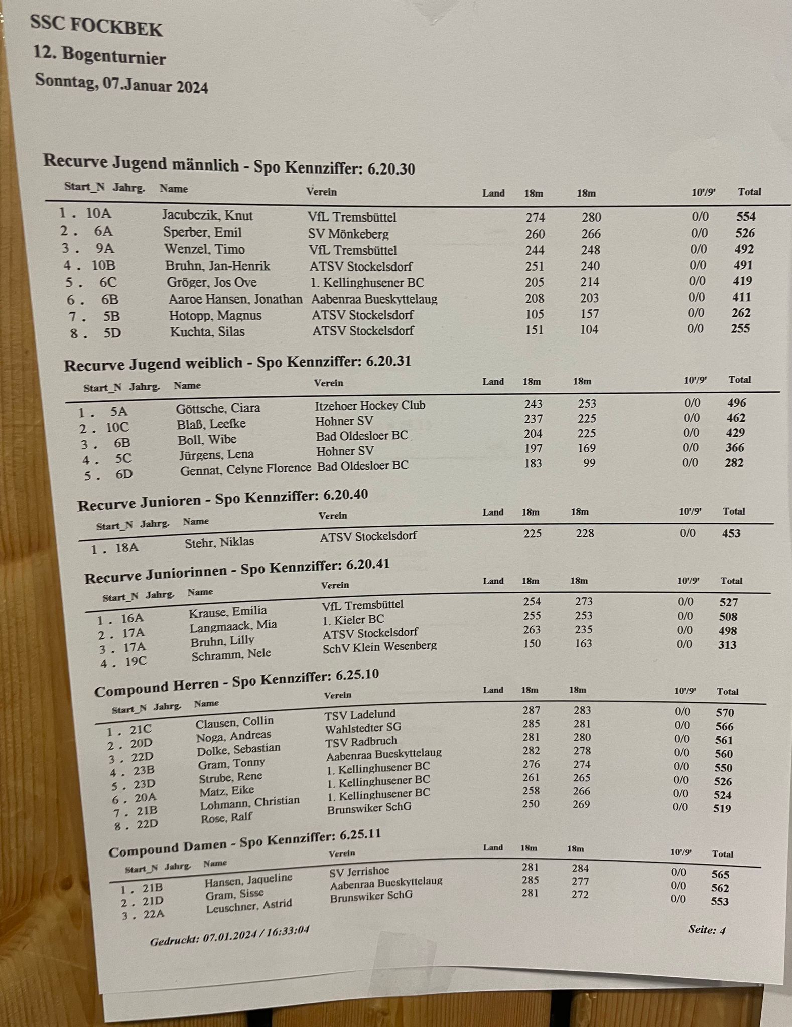 Am 5.1.2025 haben wir in Fockbek beim SSC an dem Neujahrsturnier teilgenommen. Die Stimmung war prima und haben gute Ergebnisse erziehlt und auch persönliche Bestleistungen geschossen.