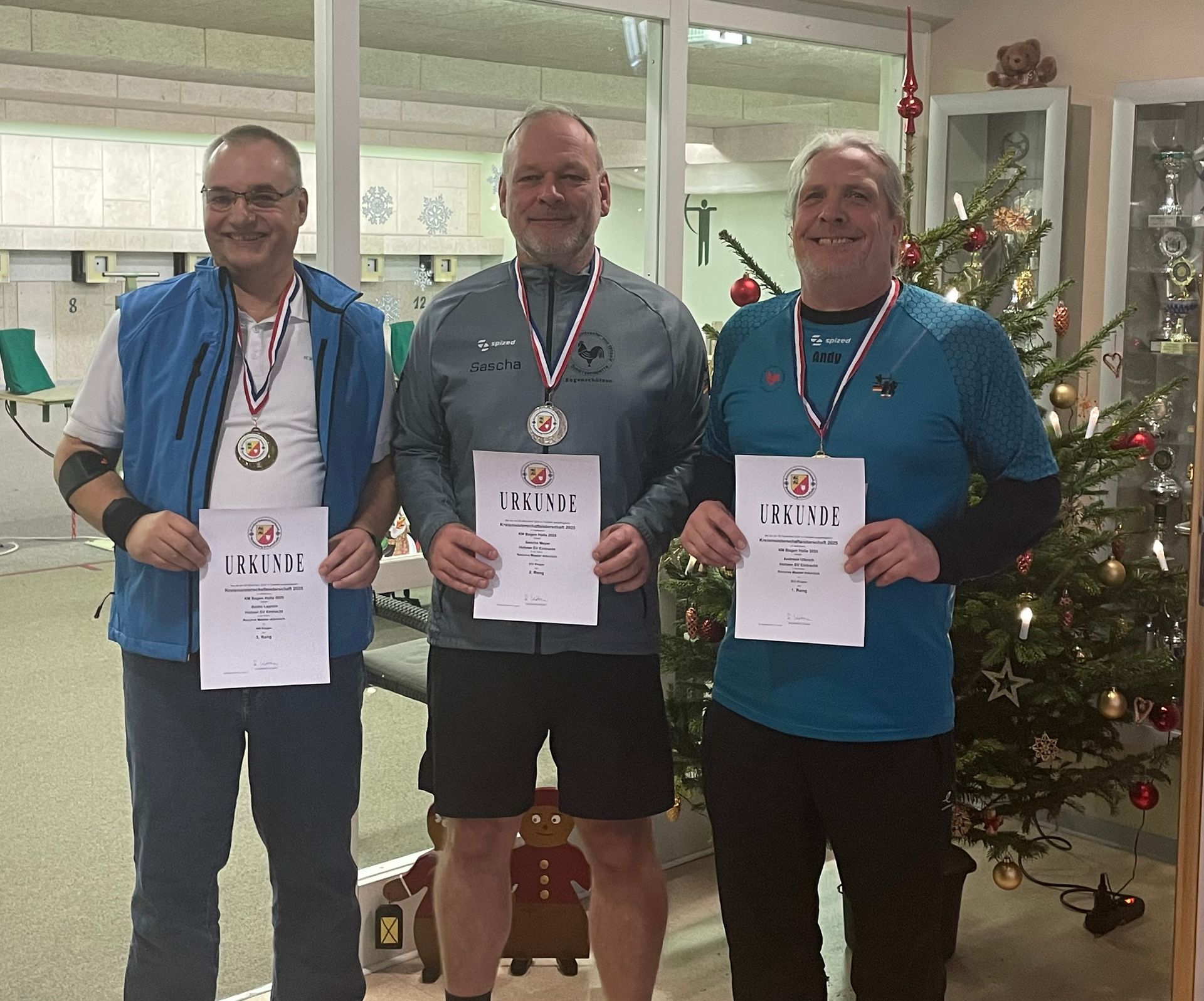 Am 8.12.2024 haben wir in Fockbek beim SSC die Kreis- meisterschaften in der Halle geschossen. Wenke, Andy und Sascha steckten noch das Ligaschießen vom Vortag in den Knochen. Trotzdem worden gute Ergebnisse und zum Teil persönliche Bestleistungen geschossen.